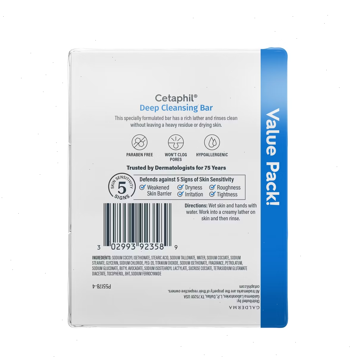 • FOR SENSITIVE SKIN: Create a clean and more hydrated complexion with Cetaphil’s Deep Cleansing Bar. It is perfectly formulated for sensitive skin to leave you with your smoothest, most nourished skin yet all while preventing irritation.
