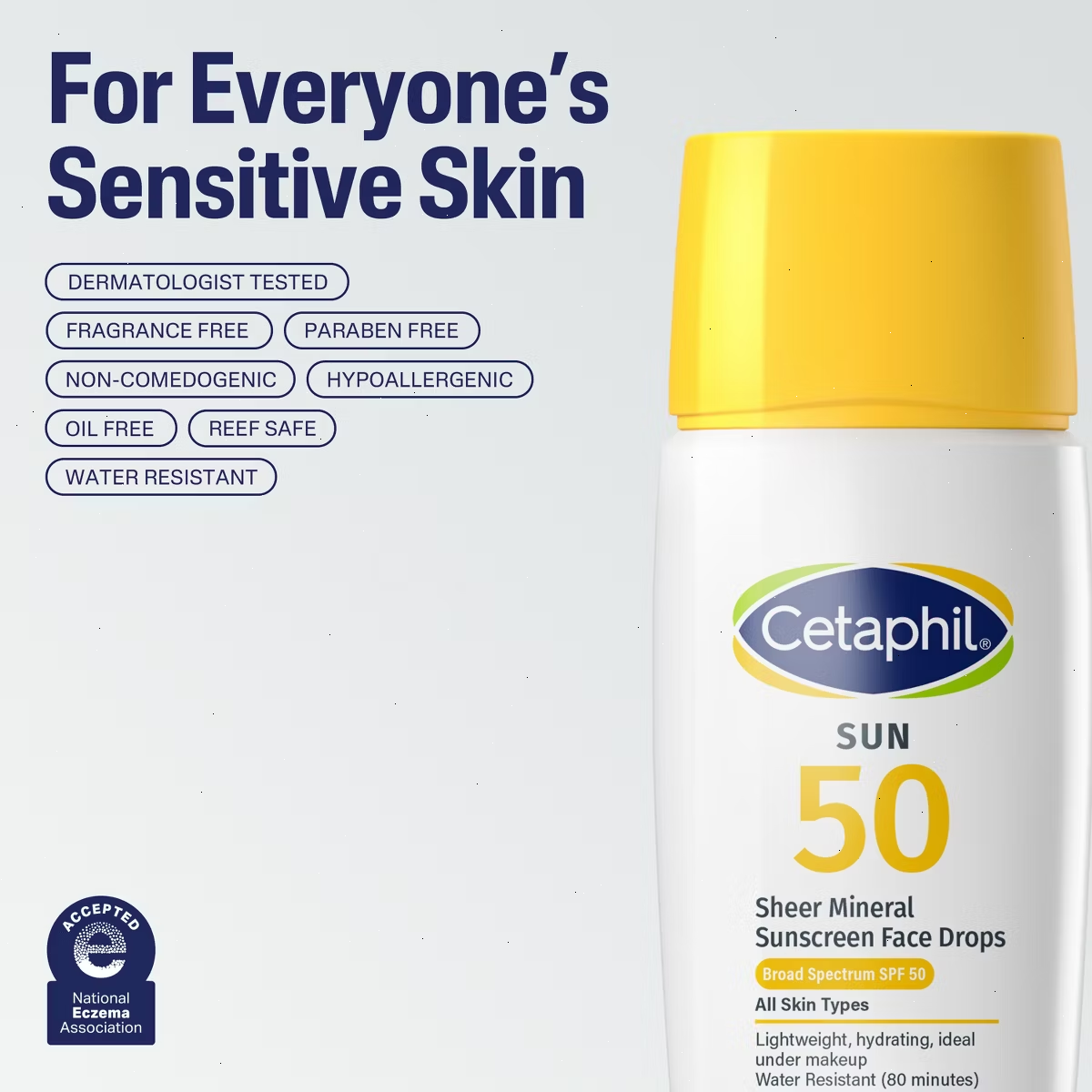 • CETAPHIL SHEER MINERAL FACE LIQUID SUNSCREEN SPF 50: Nourishes sensitive skin while providing hydrating, chemical free sun protection