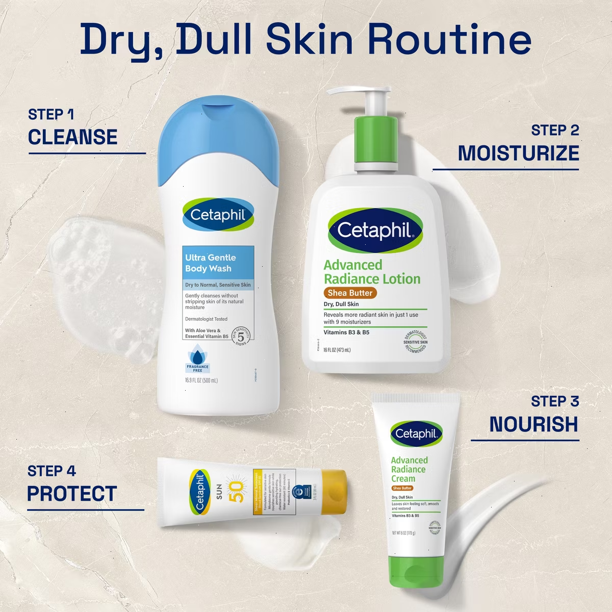• CETAPHIL ADVANCED RADIANCE LOTION: Hydrates dry, dull skin to reveal more radiant skin in just one use with 9 moisturizers including Shea Butter